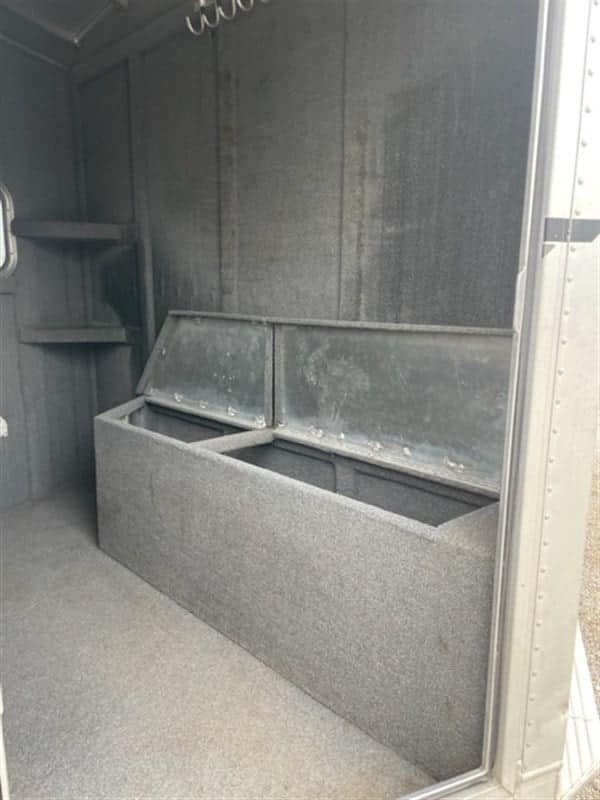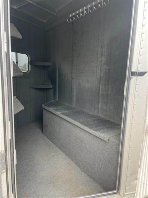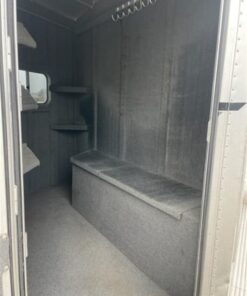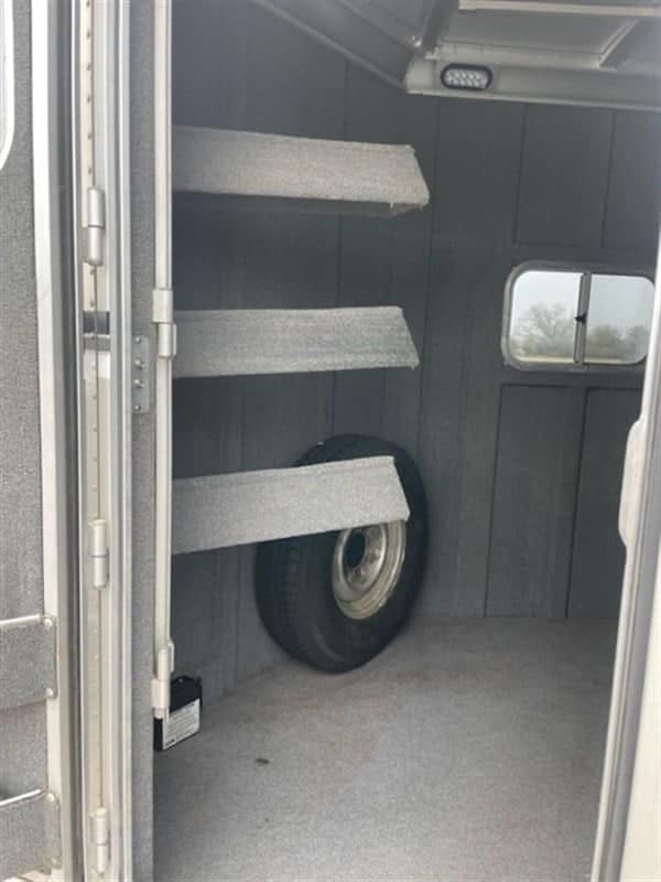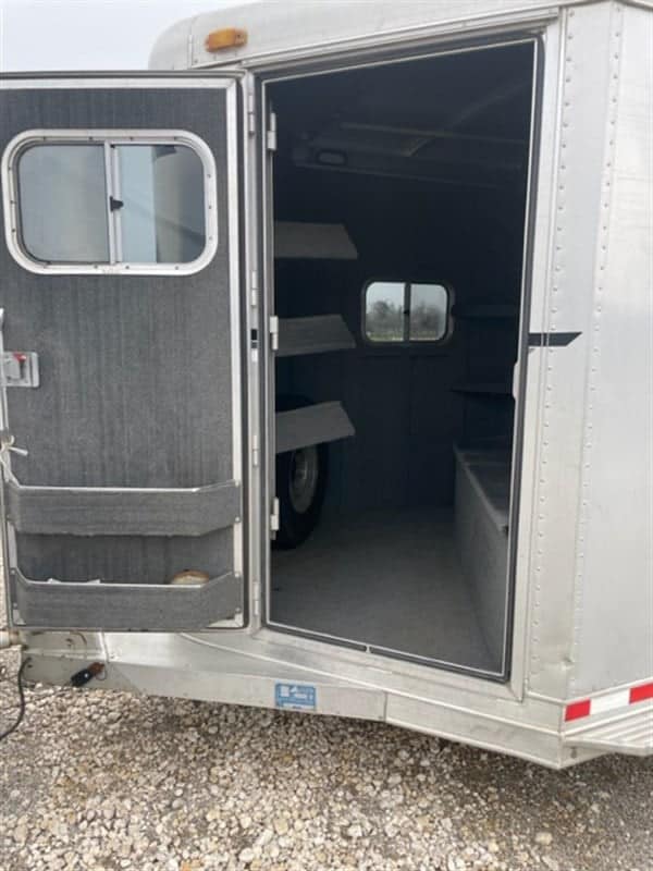 1999 Elite 3-horse bumper pull trailer. New tires including spare, all lights work, doors/partitions/drop downs all work as they should. Tack room has a boot/tack storage box and bridle hooks. Saddle rack rotates in/out for easy access. Has a factory hay rack, feed bags. Length: 20′, 7’2″ tall and 7’2″ wide, 13’6″ inside – very comfortable, even for larger horses. 8 lug, heavier duty axels. Pulls great.