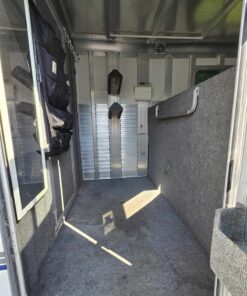 2000 C&C 2 horse all aluminum trailer with ramp & dressing room. 7’6″ inside height for tall horses. Trailer has a 2 camera system with in truck monitor, 11′ awning, new aluminum rims, almost new heavy duty trailer tires, fans on each horse, spare tire, custom screen for back opening. 2 escape doors, 2 saddle racks, bridle hooks, walk thru door to horse area. Axels blocked to accommodate newer trucks. All new LED lights. Solid, quality built trailer. Pulls great, horses load easily.