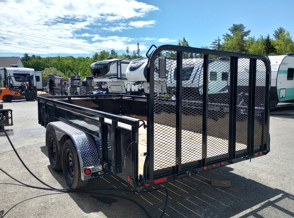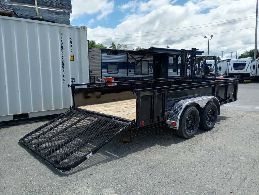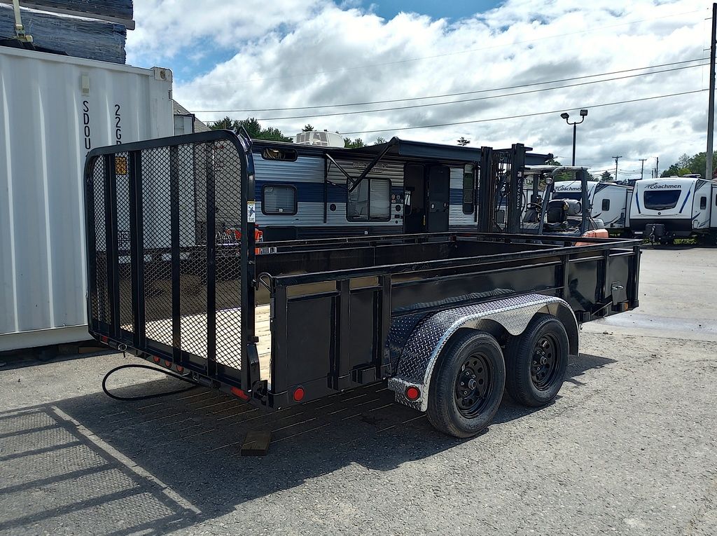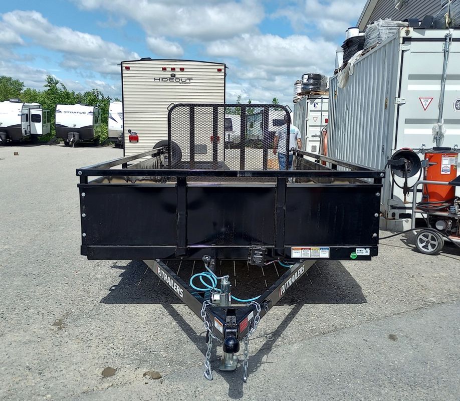 2024 PJ Trailers 7×14 7K Powder Coated Open Utility w/Rear Ramp Gate, Solid Metal Side Walls