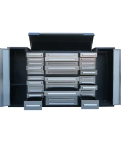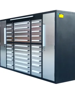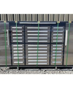 Enhance your space with the 9′ Stainless Steel Garage Cabinet (34 Drawers), an ideal addition to your home, garage, workshop, basement, or laboratory settings. Boasting 34 drawers of varying sizes, this cabinet ensures seamless storage and organization for both large and small items. The upper cabinets efficiently house space-consuming yet infrequently used items, while side cabinets offer a convenient solution for hanging and tidying clothes. Equipped with locks, anti-slip inners, pre-cut liners, and secure detents, the drawers prioritize security. The heavy-duty double slides and all-welded steel construction guarantee durability, ensuring a lasting solution for your storage needs. The stainless-steel finish not only adds resilience but also presents an easy-to-clean, aesthetically pleasing addition to any garage. Elevate your organization game with the 9′ Stainless Steel Garage Cabinet (34 Drawers) today!