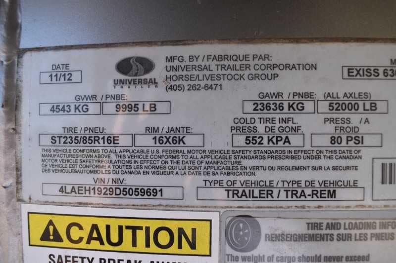 Used 2013 Exiss 6300 3 Horse Gooseneck